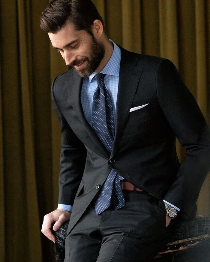 Hombres : Traje formal con camisa y corbata. Se sugiere traje en tonos oscuros o neutros.